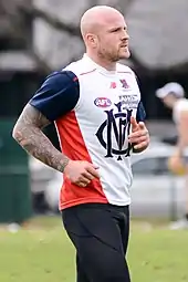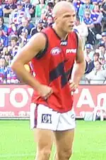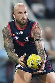 Nathan Jones (born 20 January 1988) is a former Australian rules footballer known for playing for the Melbourne Football Club in the Australian Football League. He is the older brother of St Kilda player Zak Jones.[2] He served as the captain of Melbourne from 2014 until he stepped down at the end of the 2019 season.