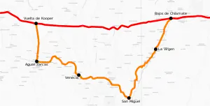 Map sketch of the old route (in orange) that connected National Route 4 (red)