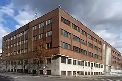 The collections originate from the professional engineering school (founded in 1717 in Prague), continued by the Prague Polytechnical Institute (founded in 1806) and finally the opening of the Czech industrial museum, founded by Vojtěch Náprstek in 1874. Further parts of his collections were transferred to the museum later in the 20th century.[1] The modern origin is the Technical Museum of Bohemia, opened to the public in 1910 in the Schwarzenberg Palace, renamed the Czechoslovakian Technical Museum in 1918 (with the founding of the state of Czechoslovakia) and moved to its present building in 1942.[1][2] It was designed by Milan Babuška, the winner of an architectural competition in Functionalist style.[2] The collection moved out during Nazi occupation, then was gradually returned, only fully occupying the main building in the 1990s.[2]