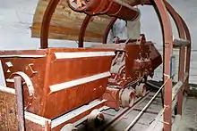 Object 825 GTS was intended to house, repair and maintain Project 613 and 633 (known as Whiskey and Romeo-class respectively) submarines.[1] The central water channel of the facility, at a length of 602 metres (1,975 ft), could accommodate up to 7 submarines if necessary, and up to 14 submarines of different classes in all water channels. The water channels have depths up to 8 metres (26 ft), with widths ranging from 12 to 22 metres (39 to 72 ft). The total area of all facilities in the complex is around 9,600 square metres (103,000 sq ft), while the total surface area of water stands at 5,200 square metres (56,000 sq ft). Equipment loading in peacetime was carried out on the pier, then conducted while watching out for the movements of spy satellites of possible military adversaries. A special tunnel is used for loading equipment into the base in wartime.[1] The complex also includes a repair and technical base, code-named Object 280, designed for storing and maintaining a nuclear arsenal.[1] Submarines could enter and exit the base completely submerged through its underwater access point.[1] Temperature inside the base is kept around 15 °C (59 °F).