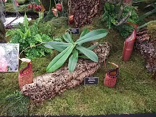 Nepenthes sibuyanensis plants from the Gold Medal-winning Borneo Exotics display at the 2011 Chelsea Flower Show, showing the pitcher-to-leaf size ratio that can be achieved in cultivation