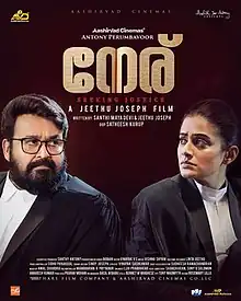 Neru (pronounced [n̪eːɾə]; transl. Truth) is a 2023 Indian Malayalam-language courtroom drama film directed by Jeethu Joseph, who also co-wrote the screenplay with Santhi Mayadevi. It was produced and distributed by Antony Perumbavoor of Aashirvad Cinemas. The film stars Mohanlal, Siddique, Anaswara Rajan along with Priyamani, Santhi Mayadevi, Jagadish, K. B. Ganesh Kumar and Sankar Induchoodan in the supporting roles. The music was composed by Vishnu Shyam.