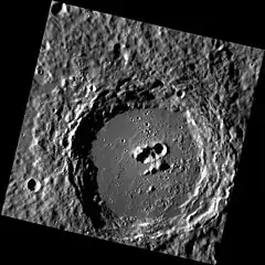 Neruda is a crater on Mercury. It has a diameter of 112 kilometers.[1] Its name was adopted by the International Astronomical Union (IAU) in 2008. Neruda was formerly named for the Chilean poet Pablo Neruda, who lived from 1904 to 1973. In 2022, it was reattributed to be named for Czech poet, journalist, writer, and art critic Jan Neruda, who lived from 1834 to 1891, and Czech classical composer Johann Baptist Georg Neruda, who lived from circa 1708 to circa 1780.[2]