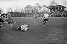 From top, left to bottom: Netherlands at the 2012 Olympic Games, in a match against Germany in 1960, 1986 Hockey World Cup: Netherlands-Canada; Marjolein Eijsvogel (r) misses goal from keeper Sharon Bayes (l) and happy with medals and cup after winning the World Cup; Her Majesty the Queen congratulates the team