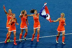 The Netherlands' national women's field hockey team is currently number one on the FIH world rankings and the reigning world champion. The Netherlands is the most successful team in World Cup history, having won the title a record nine times.[2] The team has also won nine Olympic medals.