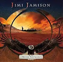 Never Too Late is the sixth and final album by the American singer-songwriter Jimi Jamison, released on November 2, 2012 by Frontiers Records.[1] The album is produced by Erik Martensson, who also co-wrote all the songs. Jamison's daughter Lacy E. Jamison is on backing vocals in "Heaven Call Your Name" and there is a Japanese bonus track, the acoustic version of "Everybody's Got a Broken Heart".[2]