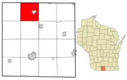 Location in Green County and the state of Wisconsin.
