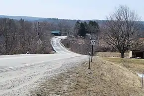 New Hampshire Route 77 (abbreviated NH 77) is a 17.874-mile-long (28.765 km) nominally east–west highway in Hillsborough and Merrimack counties in southern New Hampshire. It runs from New Boston to Dunbarton. Though labeled as east–west, the road has a north–south alignment for half of its length.