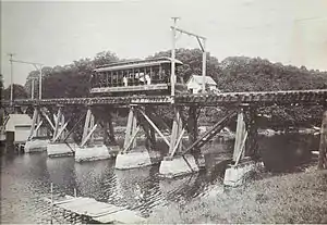 A NL&EL car crosses the Smith Cove trestle in 1906
