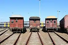End platform cars LFA 1958, RBI 1561 & LFA 942 stored at Broadmeadow Loco Depot.