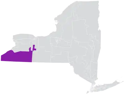 District 57 is located in the far southwestern corner of Upstate New York, including all of Allegany, Cattaraugus, and Chautauqua Counties, as well as parts of Livingston County.[1][4]