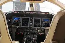 The 400XT is equipped with 3,050-pound-thrust Williams FJ44-3AP Full Authority Digital Engine Controls (FADEC) turbofan engines[3] and a Rockwell Collins Pro Line 21™ integrated avionics suite. It also has multiple aerodynamic and airframe enhancements including a streamlined, conically lofted engine cowling along with a newly designed engine beam and mounting system that is significantly stronger when compared to the original installation.[4]