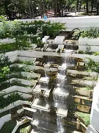 At the "School Fountain" spring, the water temperature is from 17°C to 19°C, and the yield is about 2.5 l/s. It is used for drinking treatment. It belongs to radioactive hypothermia, with a significant content of calcium, magnesium, hydrocarbons, aluminum oxide, iron oxide and silicon dioxide.[4]