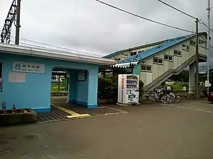 Nishi-Hiranai Station (西平内駅, Nishi-Hiranai-eki) is a railway station located in the western part of the town of Hiranai in Aomori Prefecture, Japan. The station has been operating since 1939. Since 2010, the station has been operated by the Aoimori Railway Company, a third sector, regional rail operator. It is the third busiest railway station in Hiranai. Passenger trains serve the station just under 17 hours a day; the departure time between trains is roughly 30 minutes during the morning peak with reduced frequency at other times. The station also serves as a bus station for Shimokita Kōtsu, with local bus routes connecting the station and the community in its vicinity to communities throughout the town.