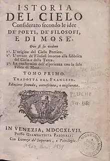 - Lo spettacolo della natura. Venice: Giovanni Battista Pasquali. 1740.