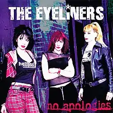No Apologies is an album by the Eyeliners, released on 5 April 2005 by Blackheart Records.[1][2] It includes a covers of When in Rome's 1988 song "The Promise" and Eddie and the Hot Rods' 1977 song "Do Anything You Wanna Do". Joan Jett and Kenny Laguna produced this album for the girls, and Joan guested on the track "Destroy" and made a cameo appearance in the music video.