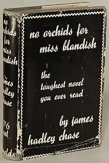 No Orchids for Miss Blandish is a 1939 crime novel by the British writer James Hadley Chase.[1] It was a critical and commercial success upon release, though it also provoked considerable controversy due to its explicit depiction of sexuality and violence.[2] In 1942, the novel was adapted into a stage play[3] and in 1948 it became a British film. The novel became particularly popular with British servicemen during World War II.[4]