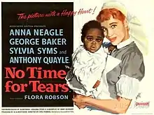 No Time for Tears is a 1957 British drama film directed by Cyril Frankel in CinemaScope and Eastman Color and starring Anna Neagle, George Baker, Sylvia Syms and Anthony Quayle.[1] The staff at a children's hospital struggle with their workload.[2]