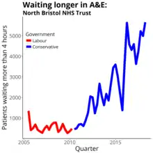 - ↑ "Blowout in 12 hour waits at 'extremely pressured' hospital trust". Health Service Journal. 15 January 2017. Retrieved 15 February 2018.
