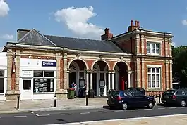 The station was designed in a hybrid classical style by Charles Barry Jr. and built in 1868 by the London, Brighton and South Coast Railway. It is listed Grade II on the National Heritage List for England as is the K6 telephone kiosk inside the portico of the station.[2][3]
