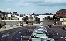 The station was chosen by British Rail for complete rebuilding in 1965–66 to designs by the architect Ray Moorcroft, as part of the electrification of the West Coast Main Line between Euston and Liverpool.[40][38][26] The Victorian station was demolished to be replaced by new structures which were described as "three cowsheds bolted together"[41] and as being of "questionable architectural merit".[29] The station layout remained unchanged: three long through platforms and a number of terminal bays.[42][29] Standard colour-light signalling was installed in the area but control was not centralised.[42] The current was switched on for the first time between Hillmorton Junction to Northampton on 6 June 1965 for insulation tests, with steam locomotives being withdrawn from the area on 27 September 1965.[40]