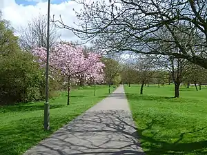 Oak Hill Park is in East Barnet in the London Borough of Barnet. It is one of Barnet's premier parks and received a Green Flag Award for 2009–10. It is a large area of parkland with a wide range of facilities, including an outdoor gym, a bowls green, football pitches, a golf course, three tennis courts, a multi-sports court and a play area for toddlers.[1]
