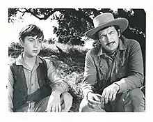 Promotional photo of Tommy Kirk and Fess Parker during filming