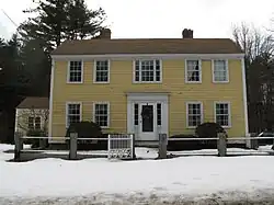 The Oliver Hutchins House is an historic house at 79 Elm Street in Chelmsford, Massachusetts. The 2+12 story house was built in the 1820s, probably by Oliver Hutchins and his brother. The house's foundations and other stone elements indicate that the Hutchinses were probably associated with the local granite quarries in some way. The house is one of a few local houses that is transitional between Georgian and Federal styling: the basic plan of the house is Georgian, despite the lack of central chimney, and the exterior and interior woodwork are heavily influenced by the publications of Asher Benjamin.[2]