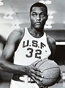 Johnson played college basketball at the University of San Francisco from 1962 to 1965. At USF, Johnson was a first team All-West Coast Conference pick each of his three years there (freshmen were ineligible) and was named WCC player of the year as a junior and senior.[1] Johnson led the Dons to WCC championships and NCAA tournament appearances in all three of his seasons. The Dons lost in the West regional final in consecutive years to eventual champion UCLA. In the 1965 NCAA tournament, Johnson led all players in scoring in rebounding average as he tallied 36 points and 18.5 rebounds per game.[2]