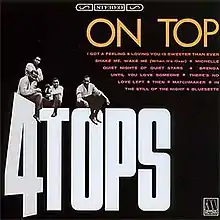 On Top is the third studio album recorded by the Four Tops, issued by Motown Records in July 1966. It reached number 32 on the US Billboard Top LPs chart and number 9 in the UK. It contains two singles: "Loving You Is Sweeter Than Ever" and "Shake Me, Wake Me (When It's Over)". The second half of the album consists of cover songs.