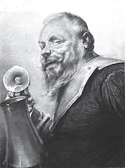 He has been often compared to the Shakespearean character of Falstaff. This comparison, made by Dyboski[6] and others,[3][8] is often based on his propensity for drinking and partying, sharp tongue and cunning, and telling exaggerated tales of his youthful adventures.[1] Unlike Falstaff, he grows to become a more mature character, and this transformation can be observed in the first book, beginning with the moment where he decides to risk his life to protect the proverbial damsel in distress, Helena, in the midst of the ongoing Chmielnicki uprising.[1][2] This transformation is likely the most crucial difference between Zagłoba and Falstaff.[7] Sienkiewicz himself wrote about Zagłoba and Falstaff thus:[8]