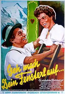 Open Your Window (German: Geh mach dein Fensterl auf) is a 1953 Austrian-German musical comedy film directed by Anton Kutter and starring Peter Pasetti, Elisabeth Stemberger and Gunther Philipp.[1]