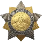 The Order of Bohdan Khmelnitsky (Russian: Орден Богдана Хмельницкого, romanized: Orden Bogdana Khmel'nitskogo, Ukrainian: Орден Богдана Хмельницького, romanized: Orden Bohdana Khmelʹnytsʹkoho) was a Soviet award named after Bohdan Khmelnytsky, Hetman (leader) of the Ukrainian Cossack Hetmanate The award was first established on October 10, 1943, by the Presidium of Supreme Soviet of the USSR during World War II. It was the only Red Army award to be written in the Ukrainian language.