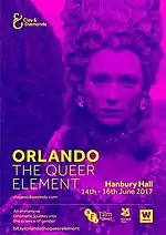 A separate series of performances was mounted in June by Clay & Diamonds with over 30 actors from the performance training company Fourth Monkey. Together they created a site-specific piece that was performed at the National Trust venues Hanbury Hall[21][22] and Knole house (the home of Vita Sackville-West, Woolf's lover, and the inspiration for Orlando). These performances were made for both the public and school audiences, with many of the performances featuring a screening of the film. The event also served part of the National Trust's "Prejudice and Pride" programme, which marked 50 years since the partial decriminalisation of homosexuality in the United Kingdom with the passage of the Sexual Offences Act 1967.[23]