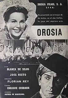 Orosia is a 1944 Spanish drama film directed by Florián Rey and starring Blanca de Silos, José Nieto and Nicolás D. Perchicot.[1]