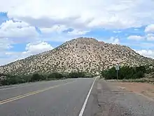 Cerro Seguro, a large hill underlain by Cieneguilla Basanite and Ortiz quartz monzonite
