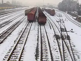 Osijek railway station (Croatian: Željeznički kolodvor Osijek) is the principal railway station in Osijek and one of the larger stations in Croatia. It is located on Lavoslav Ružička Square in the centre of Osijek.[1]