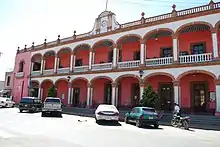 The Gonzalo Carrasco Museum and Cultural Center is located in the house in which the painter was born, which is on one side of the main plaza on Plaza de la Constitucion 17. It has been designated as an architectural monument.[9][23] The house traditionally was called the Portal El Fénix, home of the Carrasco family, who were merchants.[3][9] Gonzalo Carrasco was a Jesuit, theologian and painter who was active in the late 19th century and early 20th. He studied at the Academy of San Carlos and with José María Velasco and his work adorns a number of buildings in Mexico and other countries. Portal El Fénix is a two-story structure with a central courtyard. The lower floor was dedicated to businesses such as a general store, hairdressers and wine shop, with the family's residence upstairs.[3] A number of rooms have been restored to what they were like in the late 19th and early 20th centuries. However, the most representative part of the building was called the Tienda Grande (Large Store), a term which came to be used to refer to the entire structure. It was located in the front under the balconies. Here were sold basic necessities such as bread, fabric, wax, grains and more.[3] This house burned in 1876, but was rebuilt.[10]