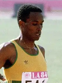 Hamilton competing in the 800 metres of the 1984 Olympics