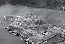 Pacific Reserve Fleet, Olympia was part of the United States Navy reserve fleets in Budd Inlet in Puget Sound off North Olympia, Washington at 47°05′57″N 122°53′41″W / 47.099178°N 122.894769°W / 47.099178; -122.894769. The Reserve Fleet was opened in 1946 to store the many surplus ships after World War II. The mothball fleet was mostly cargo ships used in the merchant marine navy. When opened is had 95 ships, mostly cargo ships, but also troop ships and oil tankers. Shore power was wired to the ships to keep them operational. Some ships there were reactivated for Korean War and Vietnam War. After the Korean War 185 ships were mothballed at the fleet. The fleet was also used to store the United States' surplus wheat in 47 ships starting in 1954. Pacific Reserve Fleet, Olympia closed in 1972, the last 29 ships in the fleet were removed, all but 4 were scrapped. [1][2]
