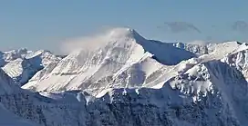 Packhorse Peak is a 2,412-metre (7,913-foot) mountain located in the Clark Range of the Canadian Rockies. The remote peak is situated 5.0 km (3.1 mi) west of the Continental Divide and 45 km (28 mi) southeast of Fernie. The nearest higher neighbor is Tombstone Mountain, 3.4 km (2.1 mi) to the southeast.[1] Packhorse Peak is more notable for its steep rise above local terrain than for its absolute elevation as topographic relief is significant with the summit rising over 885 meters (2,900 ft) above Cate Creek in 1.0 km (0.62 mi). Precipitation runoff from Packhorse Peak drains into tributaries of the Flathead River, which is three kilometers to the west. The mountain's toponym was published in 1917 from surveys performed in 1915,[3] and was officially adopted in 1939 by the Geographical Names Board of Canada.[2]