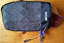 Pacsafe is a brand of travel equipment with emphasis on anti-theft features. Pacsafe is headquartered in Hong Kong with offices in the United States, Germany, and China. The company's range of products include adventure backpacks, urban and leisure bags, women’s bags, photography bags, luggage and travel accessories such as straps, cables and locks. The company logo is a turtle with its shell in the shape of a padlock with a mesh cage pattern.[1]