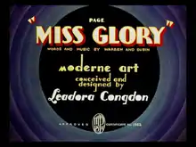 Page Miss Glory (sometimes called Miss Glory to prevent confusion with the 1935 film of the same name) is a 1936 Warner Bros. Merrie Melodies cartoon directed by Tex Avery.[2] The short was released on March 7, 1936.[3] The film uses Art Deco backgrounds and character designs.[4]