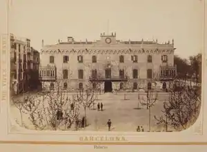 The building had its origin in a woolen port warehouse of medieval times, until it was converted into a palace in 1652 and became the official residence of the viceroys of Catalonia. It became the Royal Palace and residence of the Spanish royal family in Barcelona in 1844. It was destroyed by a fire in 1875.