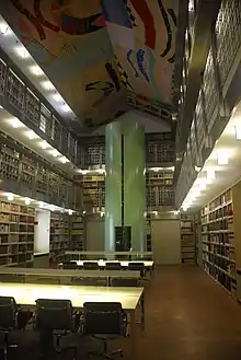 Interior of modern library with ceiling fresco by Ignazio Moncada di Paternò