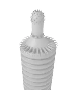 | Byronia | Scyphozoa?(Order Byroniida) | Byronia is thought to represent the polyp stage of a scyphozoan cnidarian that built narrow, chitinous tubes (theca) that were attached to the substrate by a disc. How this animal fed is unknown, but compared to other coexisting genera like Cambrorhytium, it is thought to have been a carnivore or a suspension feeder. It is thought to be closely related to coronatid scyphozoans. It was first described back in 1899. | |||