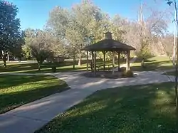 City Park was founded in 1848, after being donated by early settler David C. Reed.[4] By 1850 there were about 20 homes in this area, and the street was nicknamed "Prospect Hill."[3] Most of these early homes were torn down, and none still stand. The earliest remaining homes were built in the 1870s, two examples include the Edward M. Hackett House,[5] and the Abner L. Harris House.[6] In 1906, the Presbyterian Church was built, and in 1908 St. Peter's Lutheran Church was built; the churches are on opposite corners of City Park.[3] In 1932 the Reedsburg Municipal Hospital was built on North Park Street.