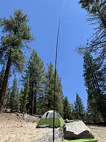Amateur radio operators who set up a temporary station at a park are known as activators, while others who 'spot' and complete contacts with them are called hunters.[15][3] Activations can take place on the initiative of an individual operator, or as part of organized group events such as Field Days.[12] Equipment used is typically small, battery operated, and may have been constructed by the operator themselves. The radio may be hand-held, carried in a backpack or a 'go box', or it could be mounted in a vehicle, as permitted by the park operator. Antennas may be small enough to form part of a hand-held unit for VHF and UHF operations, or be ground-spike or tripod-mounted temporary whips or loops for longer radio wavelengths. Where permitted by local regulations, kites, trees or lightweight masts and fishing poles are sometimes used to suspend wire antennas as high as possible to optimise performance. In this way, with patience, skill, and good luck with propagation conditions, contacts can sometimes be made worldwide using radios little larger than a pack of playing cards, although some activators prefer to use higher power, more sophisticated and larger equipment.