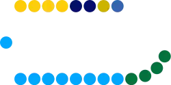 The Parliament of Curaçao[2] (Papiamento: Parlamento di Kòrsou, Dutch: Staten van Curaçao) consists of 21 members, each elected for a four-year term in a general election. The first Parliament was installed on 10 October 2010, following the dissolution of the Netherlands Antilles, and consisted of the members of the island council elected on 27 August 2010.