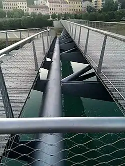 The Passerelle de la Paix ("skyway of peace") is a pedestrian and bicycle bridge over the Rhône river in Lyon, France. It connects the 6th arrondissement of Lyon and the commune of Caluire-et-Cuire.[1]